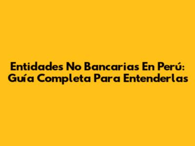 Entidades No Bancarias En Perú: Guía Completa Para Entenderlas
