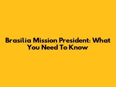 Brasilia Mission President: What You Need To Know