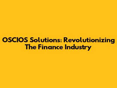 OSCIOS Solutions: Revolutionizing The Finance Industry