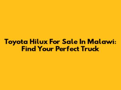 Toyota Hilux For Sale In Malawi: Find Your Perfect Truck